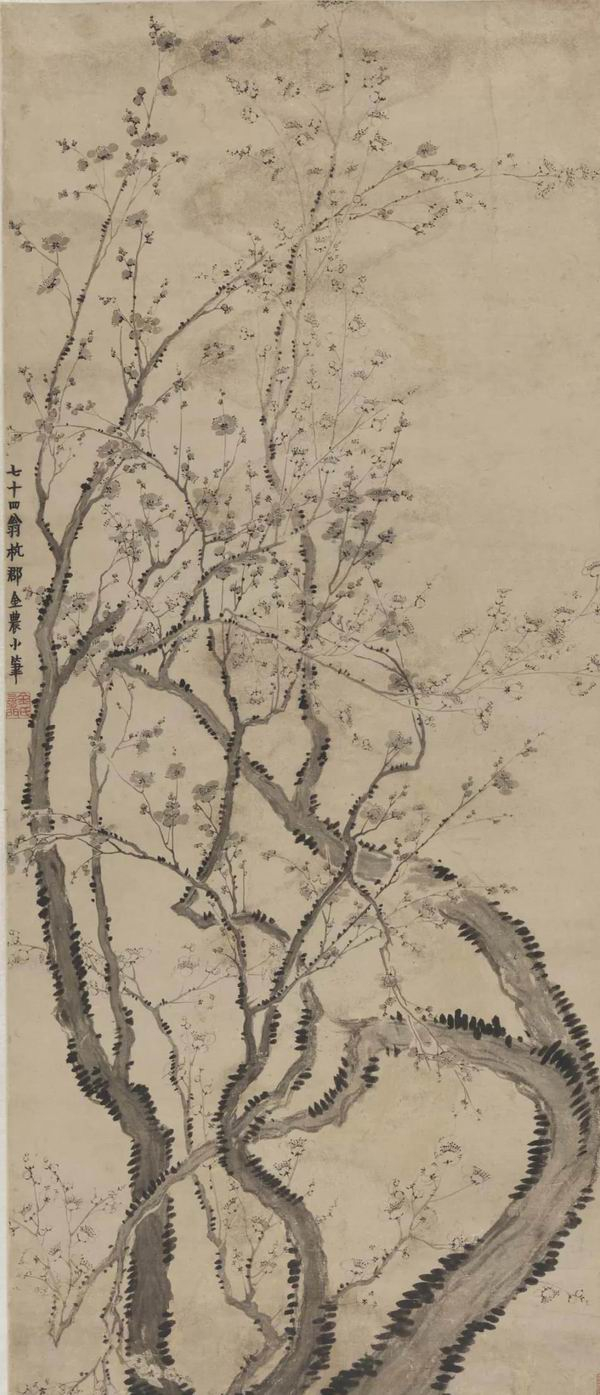 金农 双色梅花图 纸本设色 清 129.5cmx56.3cm 1964年邓拓捐赠