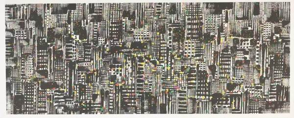 吴冠中 都市之夜 纸本水墨设色 中国画 1997年 145cm×368cm 2009年艺术家捐赠