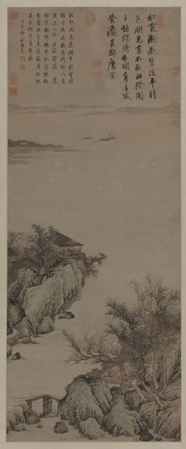 唐寅 湖山一览图 纸本水墨淡设色 中国画 明代 135cmx56cm 1964年邓拓捐赠