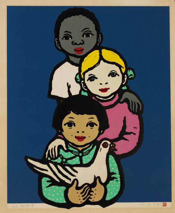李平凡 我们要和平 纸本木板套色 版画 1949年 63cm×50cm 2004年李平凡、周燕丽捐赠