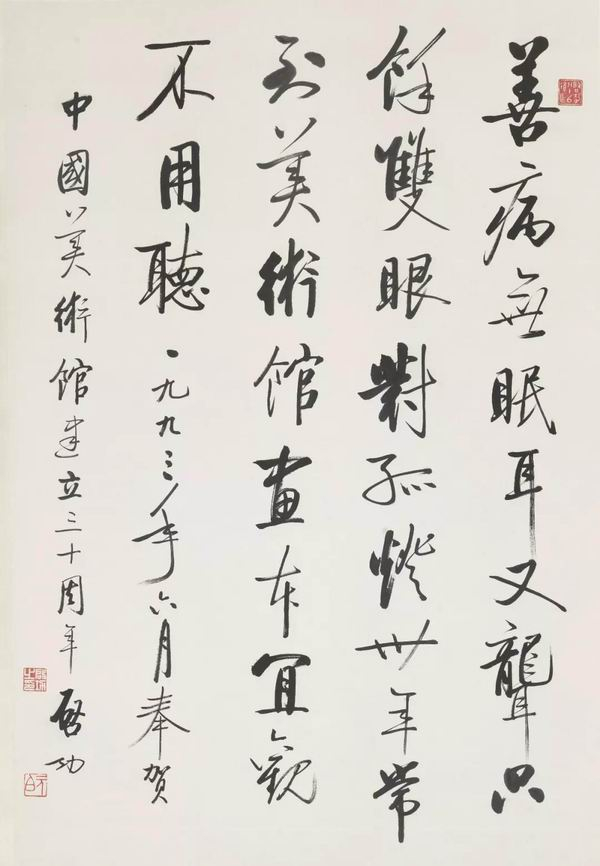 启功 为中国美术馆建立三十周年题诗一首 纸本 书法 1993年 99cm×68cm 20世纪90年代艺术家捐赠