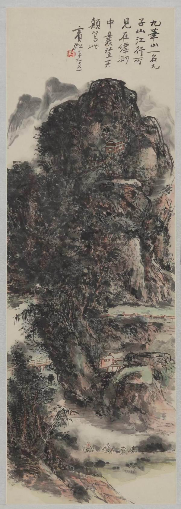 黄宾虹 九子山 纸本水墨设色 中国画 1954年 98.5cmx33.5cm 1954年艺术家捐赠