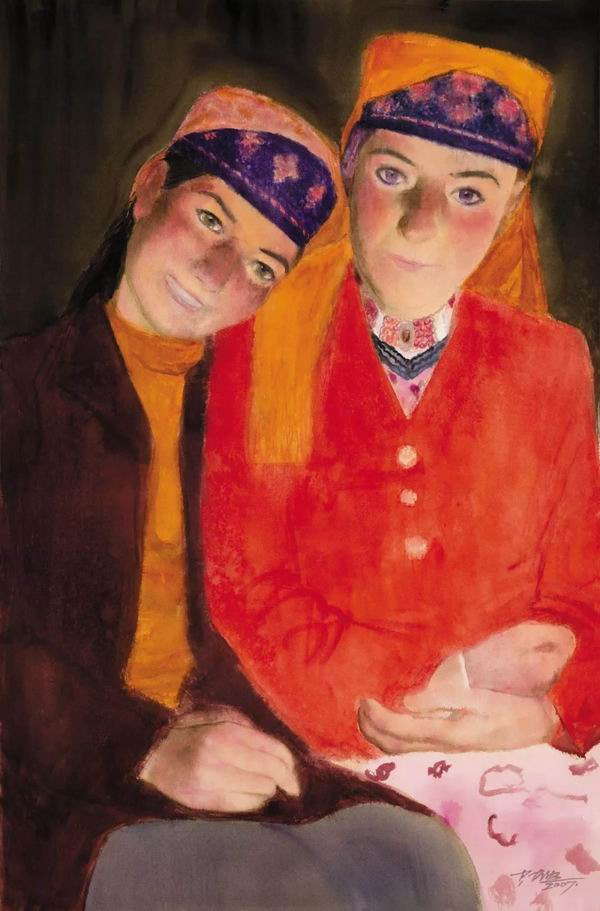 陈坚 塔吉克两姐妹 纸本水彩 水彩画 2007年 98cm×64cm 2017年艺术家捐赠