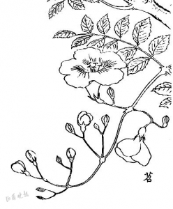 苕、陵苕这的名字,在《唐本草》之后,逐渐被凌霄代替,在“紫葳”项下曰:“此即凌霄花也,及茎、叶具用。”所谓“具用”,就是全身都是宝,花为凌霄花,可行血祛瘀,凉血祛风;根是紫葳根,用以活血散淤,解毒消肿;茎、叶,治疗皮肤瘙痒,咽喉肿痛等。而且,瑶药、苗药、壮药、侗药、土家药都有验方,在西南地区颇受珍视。