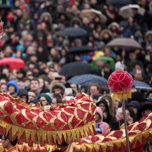 我有同事从小在伦敦长大,每年过完了圣诞和元旦,最盼着过中国年。少时是跟着父母,现在则带着孩子全家去。虽然从没搞清到底哪天是除夕,也没搞清十二生肖到底有没有猫,但一定会打听清楚伦敦新春庆典的日子,起大早去凑热闹,因为它满足了所有关于异域风情的想象,有吃有喝锣鼓喧天功夫高手云集,还一定少不了保留节目: