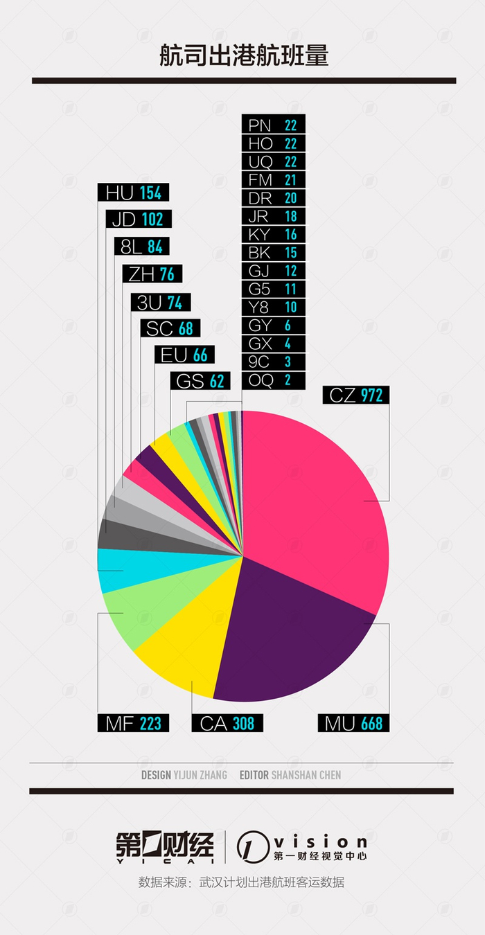据航班管家的数据显示,截止1月22日13点30分,2020年1月22~2月1日,武汉天河机场国内直飞航线76条、计划出港航班2879架次;国际航线30条、计划出港航班293架次;港澳台航线4条,计划出港航班55架次;武汉机场国内运营航司27家,投入运力最大的是南航,其次分别是东航、国航,厦航、海航。