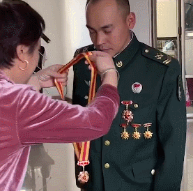 而妈妈虽然没有等到孙力超带回的儿媳妇却收到了一份特殊的礼物——孙力超的功勋章