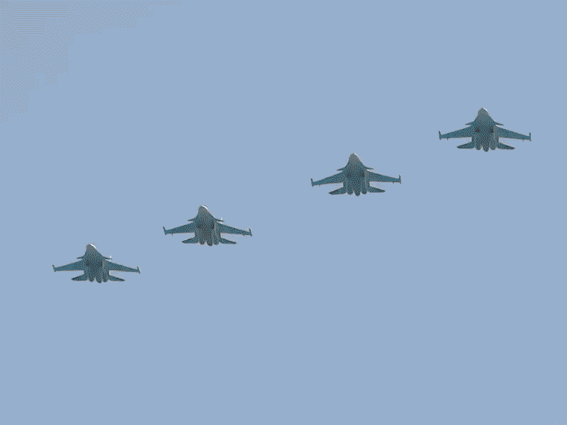 2012年8月,在纪念俄空军成立一百周年的仪式上,4架苏-34以梯队方式通场飞行。