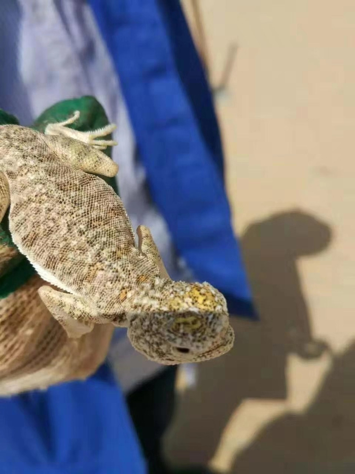 中国过年这段时间,雨水滋润干涸的代赫纳沙漠,万物疯长,是捕猎刺尾飞蜥最好的季节。一般有三种传统方法:趁其出洞晒太阳时徒手抓、久不出洞就可劲往洞里灌水、实在不行直接用枪猛轰。刺尾飞蜥的颜色很漂亮,又是草食系,尽管同事把它的肉形容得比鸡还要鲜美一百倍,也引不起我吃掉它的欲望,倒是好想当作宠物养。