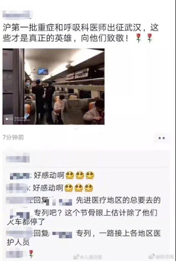 网友在朋友圈中分享上海第一批医疗队出征武汉的消息。