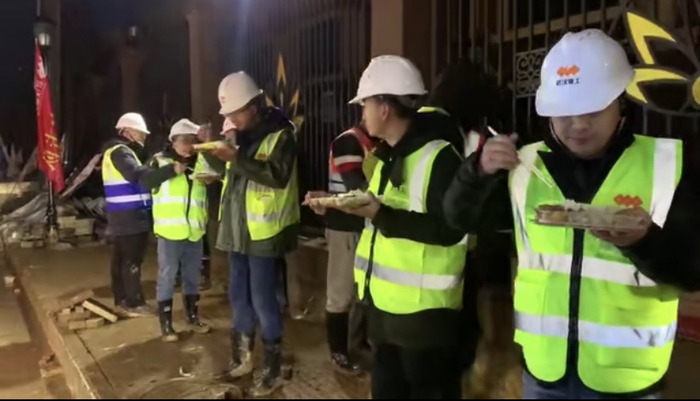 “今晚没有年夜饭,马上会有一批盒饭送到现场,给这里50余名现场人员,大家会站在路边把饭吃了,就当作过年了。”武汉建工一名负责人告诉澎湃新闻,“时间就是生命!我们会在春节期间连续七天昼夜不停施工,确保2月3日武汉小汤山能投入使用。”