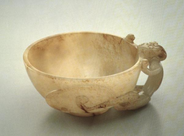 明晚期,玉盃,高3.7厘米,盃径7.3厘米,最宽8.7厘米,台北故宫博物院藏。