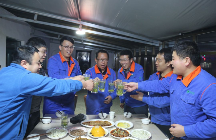 从施工现场巡查结束回到驻地,杜淼和同事在手机上反复听着这首名叫《高原铁军》的歌。这是青海至河南特高压工程开工后,青海送变电工程有限公司的一群年轻人自己创作的歌曲。项目部的春节联欢会上,他们准备表演这个节目。杜淼:“过年先保证我们整个现场的安全。保证这个的前提下,搞一些联欢的活动,一起吃个年夜饭啥的,也比较热闹。”