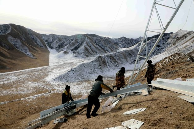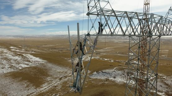 现代豫剧《李双双》选段中有这样一段唱词:“社里要把电线架,架了高压,架低压,低压电杆两丈二,高压电杆两丈八”。如今,一条连接青藏高原和中原大地、输电能力远远超过两丈八高压电杆的电力动脉——青海至河南±800千伏特高压直流输电工程即将贯通。架起这条线路的,就是青藏高原上的“云端舞者”——电力人。