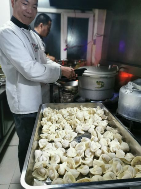 因为李友兵和一些工友要小别工地,回家过年,厨师长特别做了几道拿手好菜,工友们提前吃一顿团圆饭。