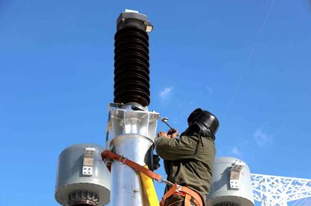 变电站施工人员在进行电气设备安装 | 摄影:邹建华
