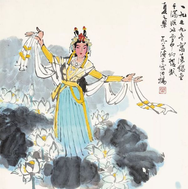 中国画-荷花舞 1979 叶浅予 68.4x67.7 纸本 江苏省美术馆藏