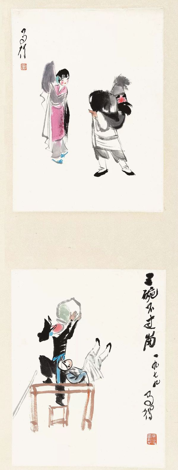 中国画-戏曲人物二幅合轴 1979 高马得 33.5x27.5 36.5x27.5 纸本 江苏省美术馆藏