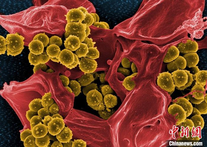金黄色葡萄球菌寄生图。 中科院微生物所/供图