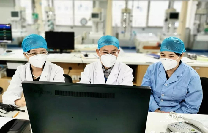 王瑜玲(左一)带领的石家庄市第五医院医护团队夜以继日战斗在救治一线。石家庄市第五医院供图