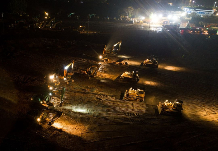 1月24除夕,一夜间,上百台挖机抵达现场,上千人鏖战,开展土地平整。