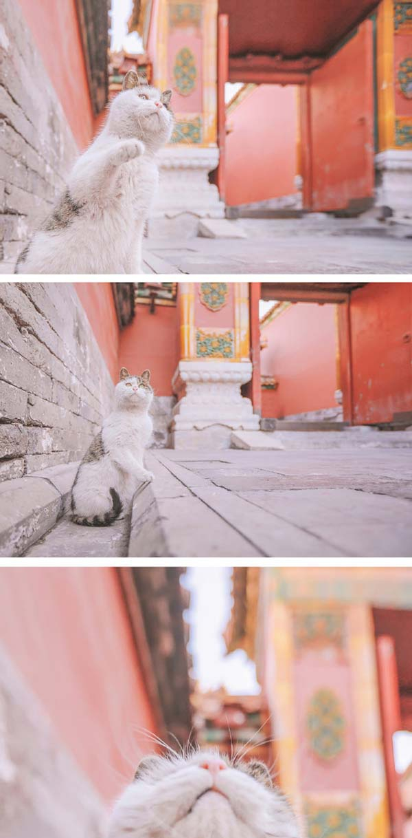 在微博上还有一群摄影师,做足功课,寻找游客不太到访的“小众路线”,拍下故宫猫儿的悠闲生活,其中摄影师刘顺儿妞镜头下的故宫猫,还上了“故宫x列支敦士登” 出品的故宫邮票上。那么,刘顺儿妞是如何拍摄故宫猫的: