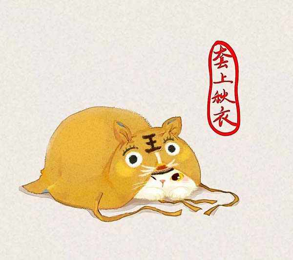 故宫博物院官方微信”微故宫“上推出的“‘猫’在宫中“,以猫为载体介绍故宫文物,此图文物为清同治·杏黄缎虎头式棉风帽。 插画 樊星