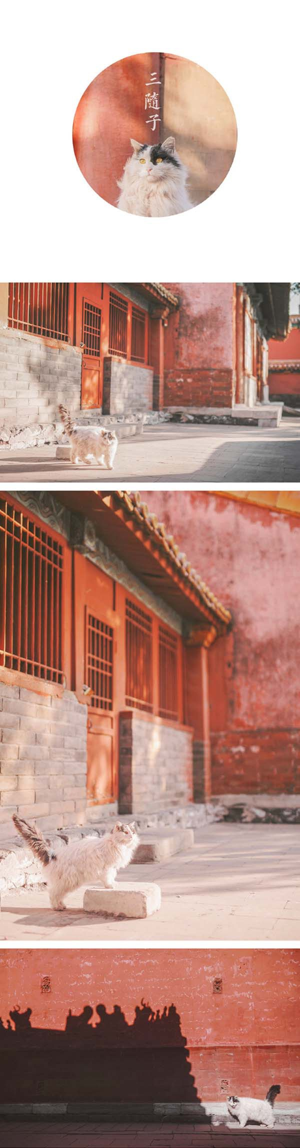 因为“三随子”的毛特别蓬松,显得很霸气,网友们就给它起了一个名字叫“鳌拜”。它也是故宫中标识度很高的“网红”猫,故宫文创很多也源自于“三随子”。所以很有游客看到“三随子”也会凑上前拍照,“但‘三随子’一点都没有把它的‘粉丝’放在眼里,该晒太阳晒太阳,该舔毛舔毛,霸气如鳌拜。”