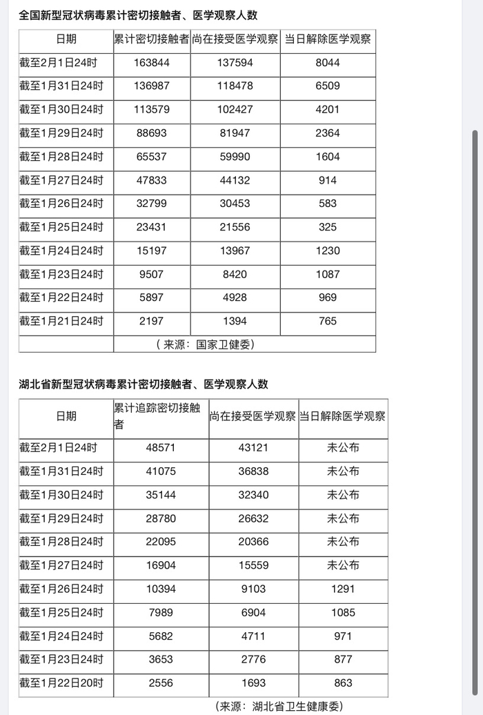 除了密切接触者以外,正在进行医学观察的人数也不容忽视。截至2月2日,全国正在接受医学观察的人数达到137594人,近5日每天的新增医学观察人数也都超过2万人,要明显多于解除医学观察的人数。另外截至2月2日,湖北省正在接受医学观察的人数为43121人,更值得注意的是,湖北省卫健委自1月27日以来,就没有再公布解除医学观察的人数,也就是说,每天接受医学观察的人数都在增长。