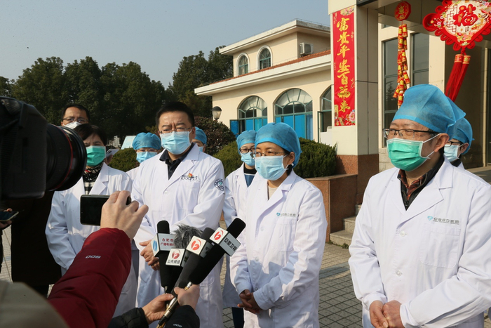 在当天两例患者出院时,中国科大附一院(安徽省立医院)执行院长刘连新来到感染病院区,向出院患者表示祝贺,并慰问了奋战在防疫一线的医务人员。