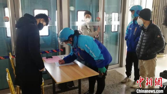 中新网济南2月3日电 (孙婷婷)测量体温、领取口罩、消毒外卖箱……3日上午8时30分,山东济南44岁的外卖骑手牛福敬做好个人防护后,开始了一天的工作。在防控新型冠状病毒感染的肺炎疫情期间,牛福敬与全国各地的外卖骑手一样,没有遵守“不出门”。他们戴好口罩,穿梭在城市的大街小巷,将蔬菜、米面油、药品等物资,及时送至市民手中。