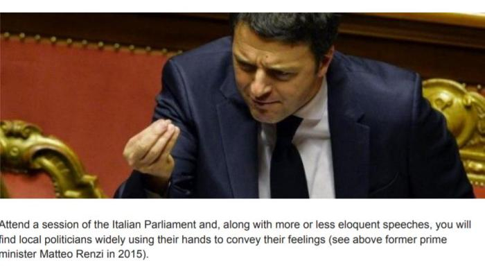 意大利前总理伦齐做出这个手势。图片来源:Unicode官网文件截图。