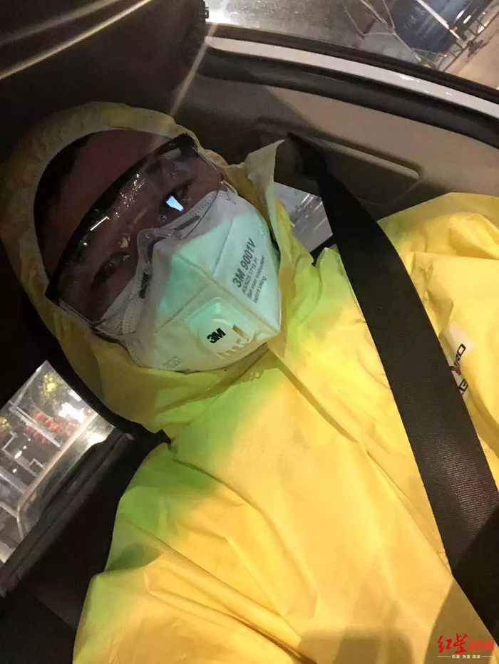 “之前大家说,医院最好别去,太危险了。发热病人最好别接送,万一传染你,又传染其他人,怎么办?”刘田说,“但我想老人不方便啊。我们穿了隔离服、戴了口罩、面具(护目镜),然后往车上喷了消毒液。我也没告诉家里人,怕他们担心嘛,本来家里不让我出来的。”