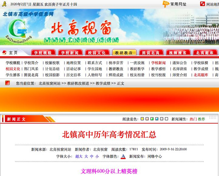 北镇市高级中学官网上,至今还在见证着李文亮的优秀往昔。