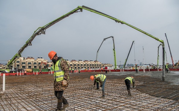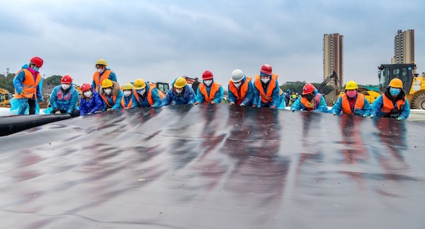 2020年1月26日,大年初二,火神山医院HDPE膜铺设。CICPHOTO/黄蕾 新华社