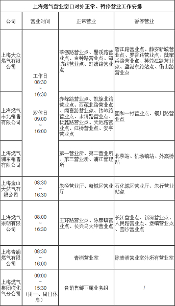 图说:上海燃气营业窗口工作安排 来源 上海燃气