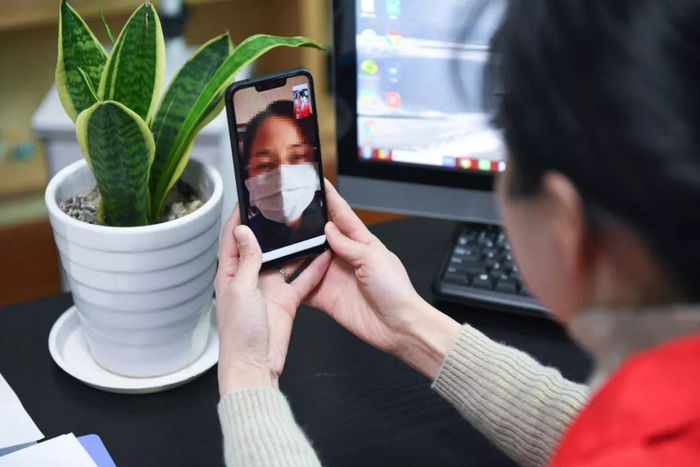 2月4日,浙江慈溪,一名青年志愿者通过视频电话开展义务心理咨询服务。徐昱/摄新华社CNML图片