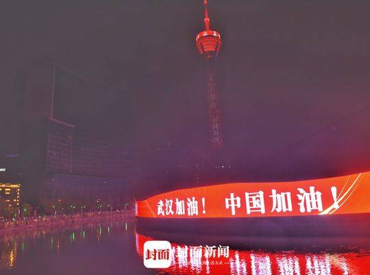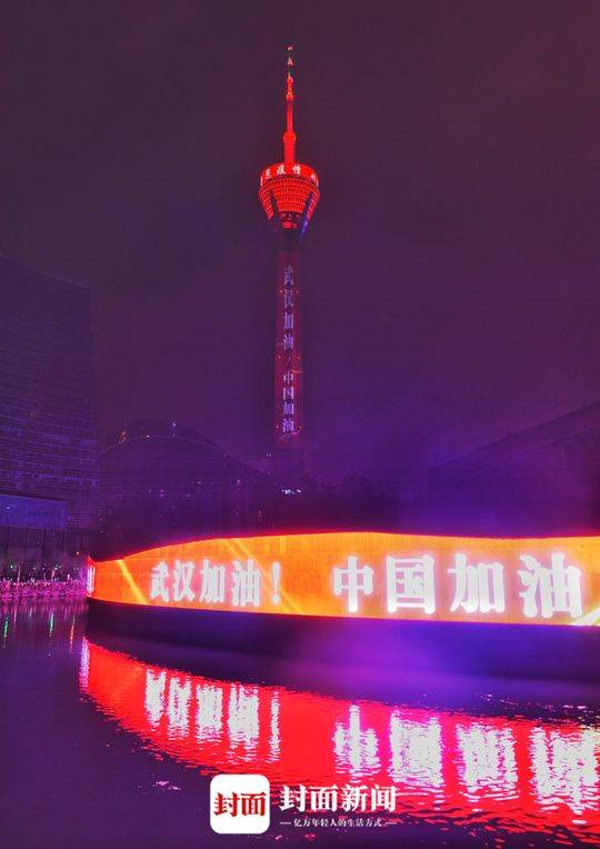 为提振疫情防控信心、鼓舞全国人民士气,成都多点位以景观照明宣传标语形式为武汉加油、为中国加油。