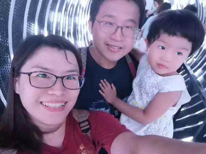 余冬、程鑫和孩子,一家三口的合影。受访者 供图