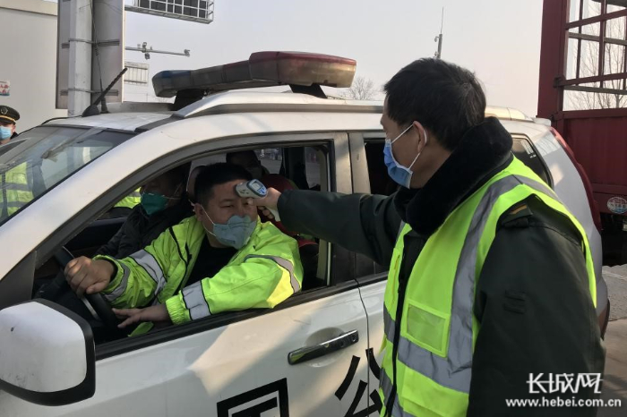 威县收费站党支部书记、站长李文平对进出人员进行测温。 葛俊鹏 供图