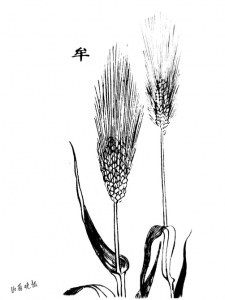 除了《豳风·七月》,《鄘风》的《桑中》有“爰采麦矣,沫之北矣”,《载驰》有“我行其野,芃芃(音如蓬)其麦”;《王风·丘中有麻》有“丘中有麦,彼留子国”;《大雅·生民》有“麻麦幪幪(音如蒙),瓜瓞唪唪(音如甭)”;《鲁颂·閟宫》有“黍稷重穋,稙(音如值)穉(音如至)菽麦”;以及上篇提到《周颂》中《思文》的“贻我来牟”和《臣工》的“于皇来牟”,(牟即麰,同麦)。《桑中》之外,其余诸诗此前均有引注,可参看。