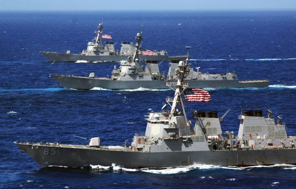 资料图片:美海军伯克级驱逐舰编队。(美海军官网)