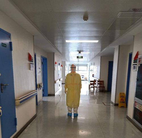 怀着紧张、担心的心情初次进驻病房,按50张床,还缺33张空床,准备打一场硬仗。我和杨航、王奔、王军红(老队员)一组在外面开医嘱,写病历;赵志伶姐姐、李秋钰,刘作静穿隔离服进病房看病人,分组进可以减少防护装备的消耗,有个ICU的姐姐在心里很踏实。