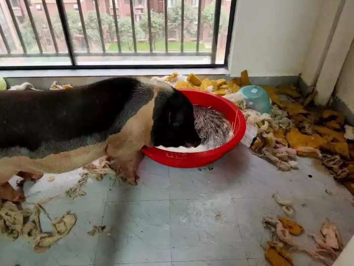 2月初,协会就救助了一只名叫“屁屁”的小香猪。小香猪在家留守了12天,协会赶到时发现它被关在阳台,食物、水都没了,放粮的盆都被啃烂了。“它见到我们特别兴奋,发出了一声奇特的叫声。”