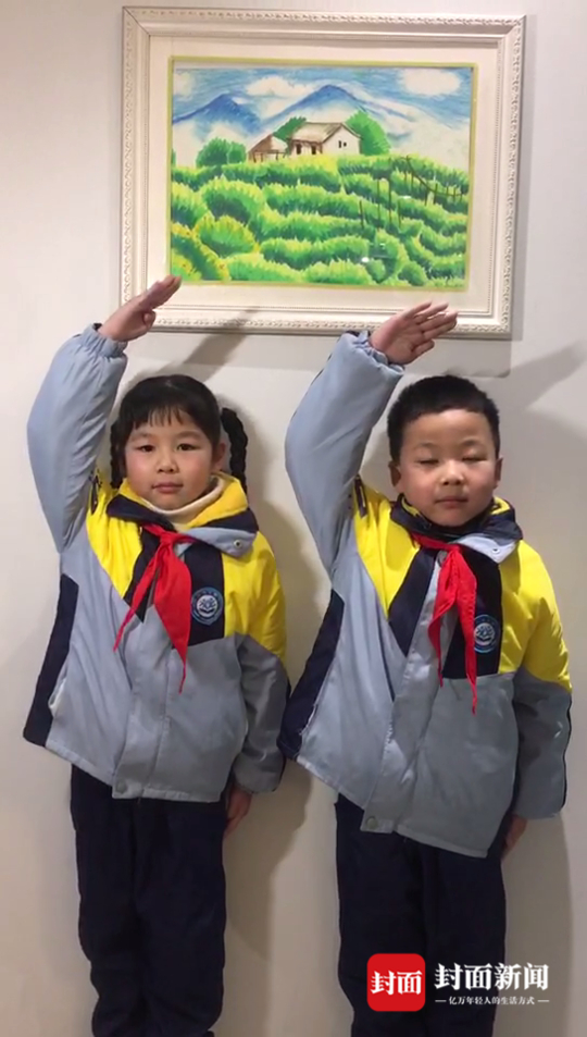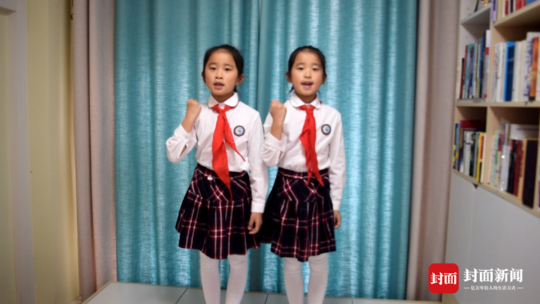 “在抗击疫情过程中,其实各个学校都希望孩子们通过不同形式来表达对‘逆行者’的敬意。很多孩子们都通过图画和小视频的形式来呈现。”岷山路小学的佟老师说,“我们当时想,学校有2000多名学生,这其中有很多双胞胎。通过双胞胎录视频来表达的话,不仅可以致敬,还有好事成双的寓意。”