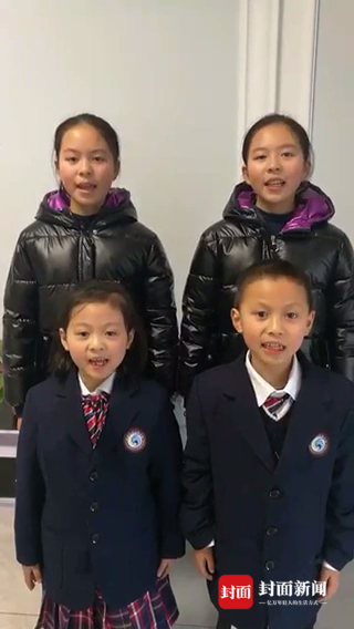 钟琴是两对双胞胎的妈妈,大一点的双胞胎在读六年级,小一点的双胞胎是一年级的学生。钟琴说,在录制视频时,她带着孩子们在网上学了一套手势。为了尽可能让4个孩子动作整齐,经过了多次排练。在拍摄视频时,前后共拍了10次左右,最后将最好的一段传给了学校。