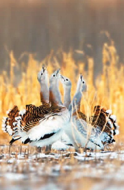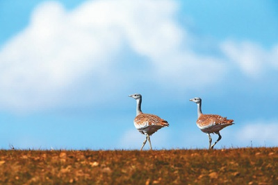 作为陆地上最重的飞行鸟类之一,一只成年雄性大鸨体重能达十多公斤。它们的翅膀若充分伸展开来,可达约两米。这种杂食性的大型地栖鸟类栖息需要广阔的平原、草地或田野。
