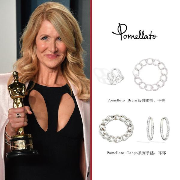 上台领奖时Laura Dern换了一身行头,意大利珠宝品牌Pomellato为其添彩。