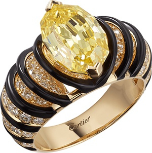 Natalie Portman这次的Dior高定礼服也是黑色,而且还特意在斗篷上绣了王子逸、格蕾塔·葛韦格等女导演的名字,意图是回应这次奥斯卡最佳女导演提名中没有女性。为了呼应衣服上的黑金亮色,她戴的珠宝也是这两种颜色,都来自Cartier,分别是Clash de Cartier系列耳环和卡地亚高级珠宝系列戒指。