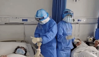 医护人员进入病房